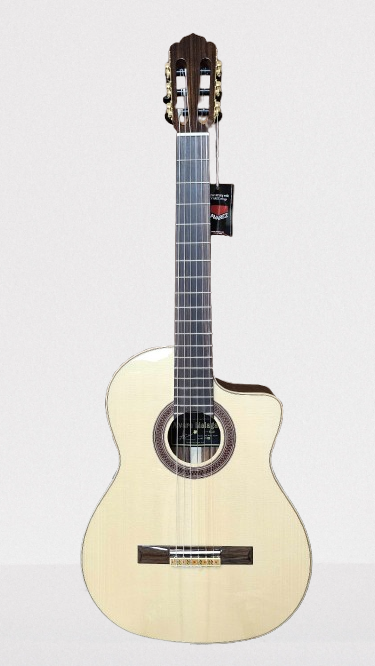 Body Body type: Classical Cutaway: Single Top wood: Solid European spruce Back and sides: Rosewood Bracing pattern: Fan Body finish: Gloss Orientation: Right handed Neck Neck shape: C Nut width: 1.96″ (50 mm) Fingerboard: Rosewood Neck wood: Mahogany Scale length: 25.5″ Number of frets: 19 Neck finish: Gloss Other Headstock overlay: Rosewood Tuning machines: Cordoba […]